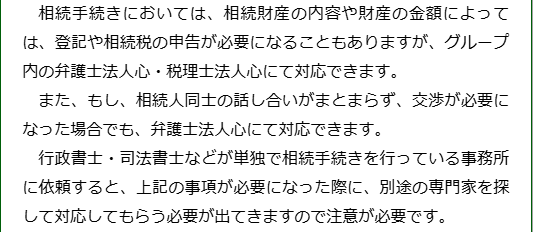 事務所によっては、各専門家がお互いに連携しているところもありますので、これらの手続きが含まれる場合には、そのような事務所に依頼されることもおすすめです。
