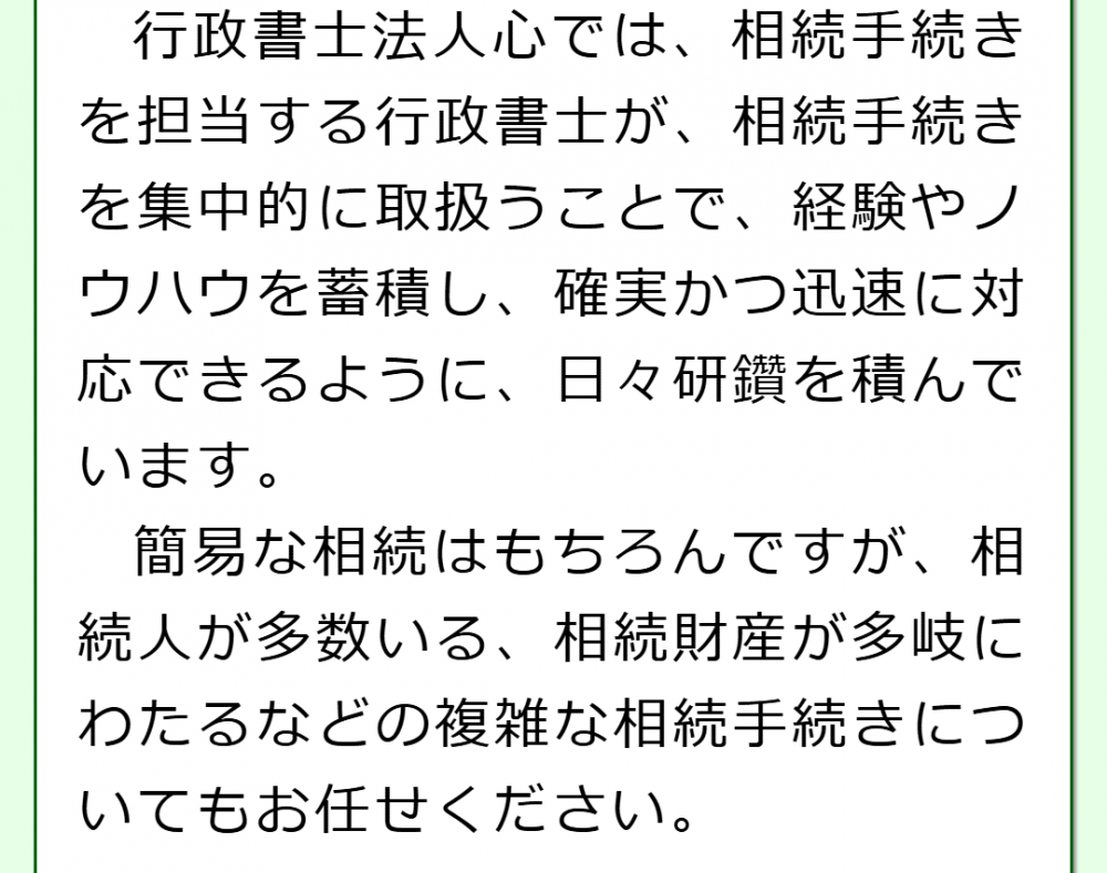 当法人では、相続手続きを得意とする行政書士が、ご相談・ご依頼を承ります。