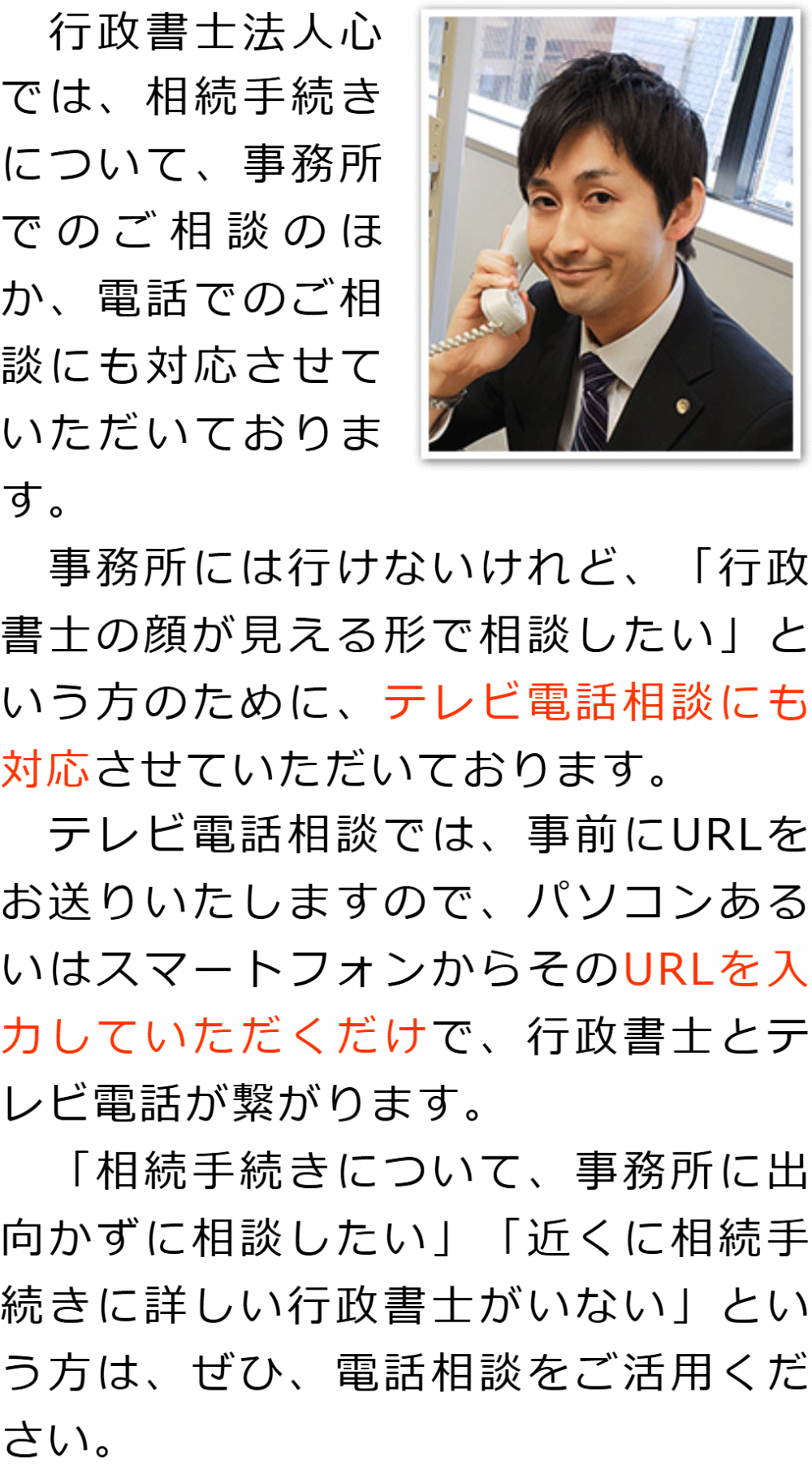 トップ電話・テレビ電話相談について 階層構造▼ 電話・テレビ電話相談について 受付時間 平日 9時~21時、土日祝 9時~18時 夜間・土日祝の相談も対応します (要予約) 所在地 〒530-0001 大阪府大阪市北区梅田1-1-3大阪駅前第3ビル30F 0120-2403-39 お問合せ・アクセス・地図