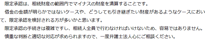 トップ業務内容限定承認 階層構造▼ 業務内容(目次) 限定承認 業務内容(目次)業務内容トップ行政書士法人心の業務内容遺言遺産整理相続人調査相続財産調査遺産分割協議書の作成預金・貯金の解約・名義変更証券口座の解約・名義変更自動車の名義変更心グループのその他の業務内容家族信託・民事信託節税対策事業承継遺言の検認相続放棄限定承認遺産分割遺留分侵害額請求相続登記相続税申告相続税調査 受付時間 平日 9時~21時、土日祝 9時~18時 夜間・土日祝の相談も対応します (要予約) 所在地 〒530-0001 大阪府大阪市北区梅田1-1-3大阪駅前第3ビル30F 0120-2403-39 お問合せ・アクセス・地図